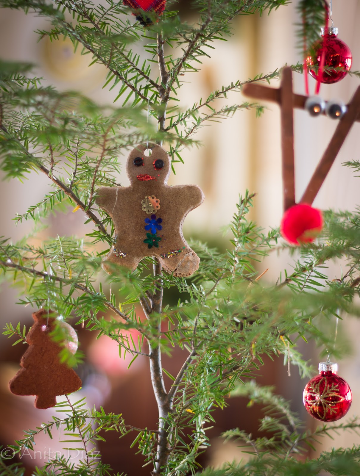 On the island, which I desperately want to take apart and reconfigure, is another little hemlock tree with cinnamon gingerbread ornaments my kids made in preschool.