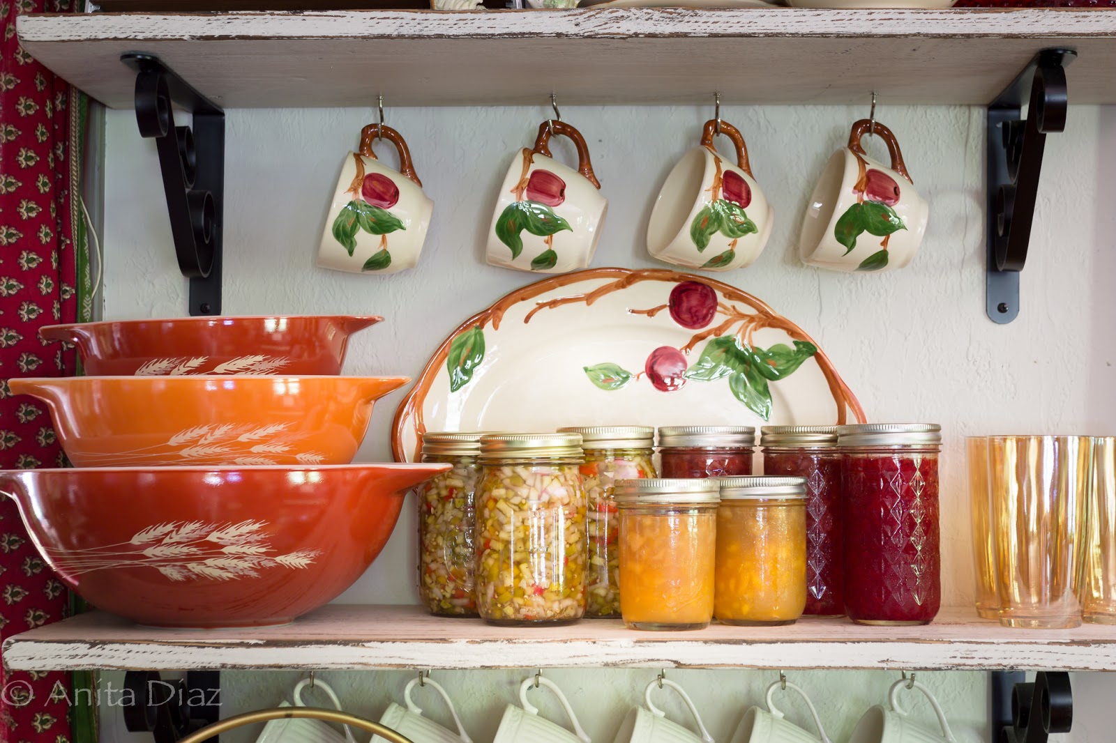 Of course, my mother’s homemade strawberry and peach preserves are perfect for my color palette, as well as her sweet salad pickles. And it doesn’t hurt that they are all delicious as well!