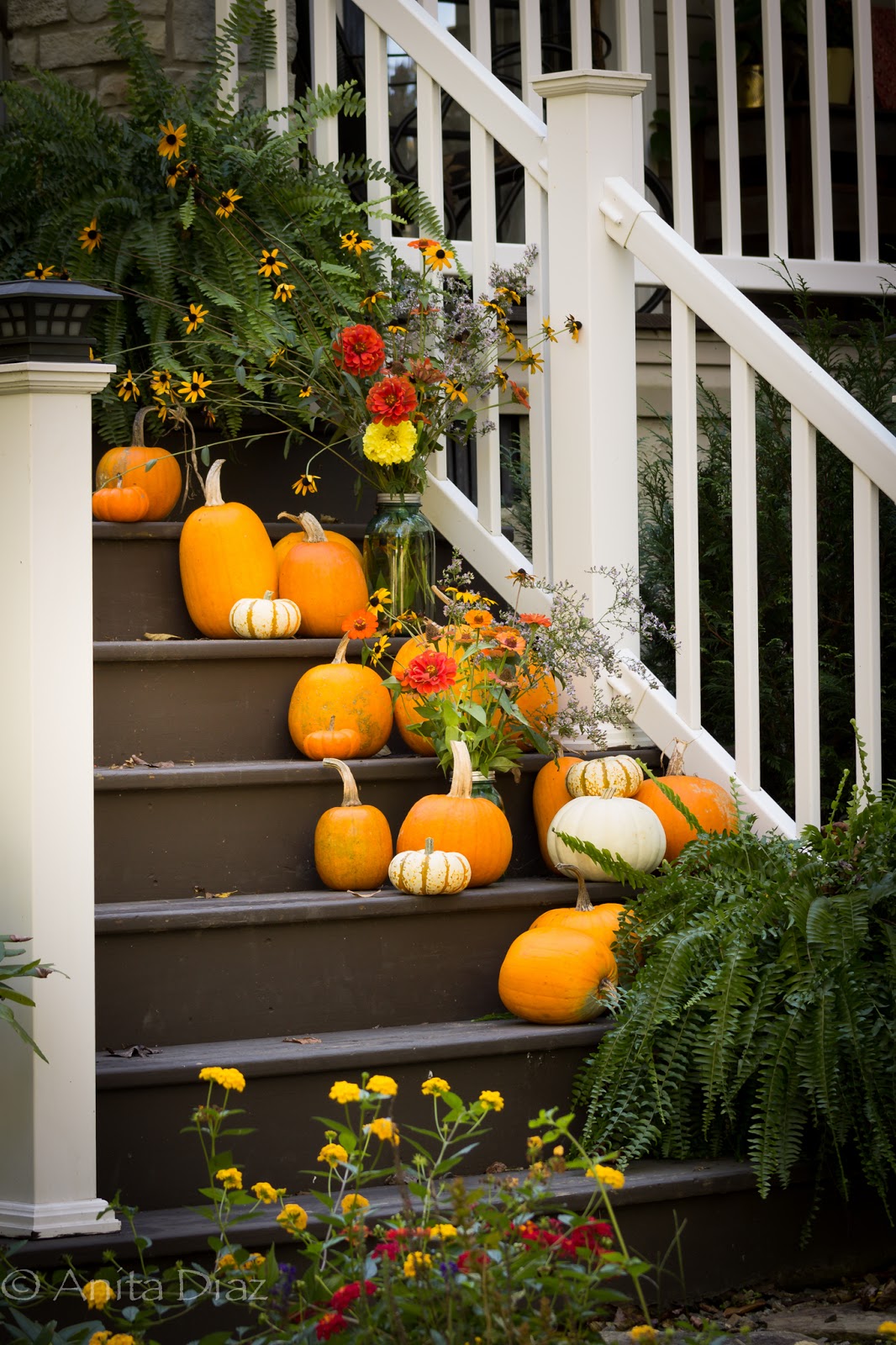 Your fall porch is enchanting! I love how much love and energy you put into it. The Indian corn is amazing and the wildflowers add a beautiful pop of color. Of course, the whole scene wouldn't be so magical if there weren't for pumpkins that make your porch look like a scene from Cinderella fairy tale.