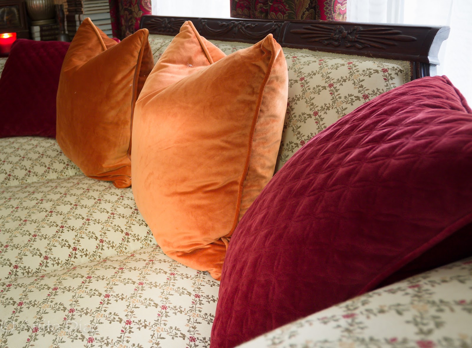 I love your home, with it's cozy colors, antique furniture, and charming eclectic mix of fabrics and decor items! My home is neutral farmhouse style…devoid of deep vibrant hues. I'm going to add some lovely fall pillows and accents like you have in your home. Thank you, for inspiring me! Your fan, Sharon