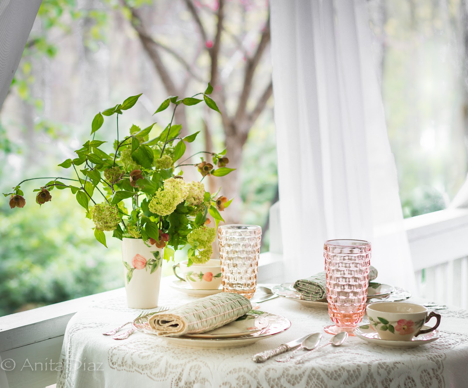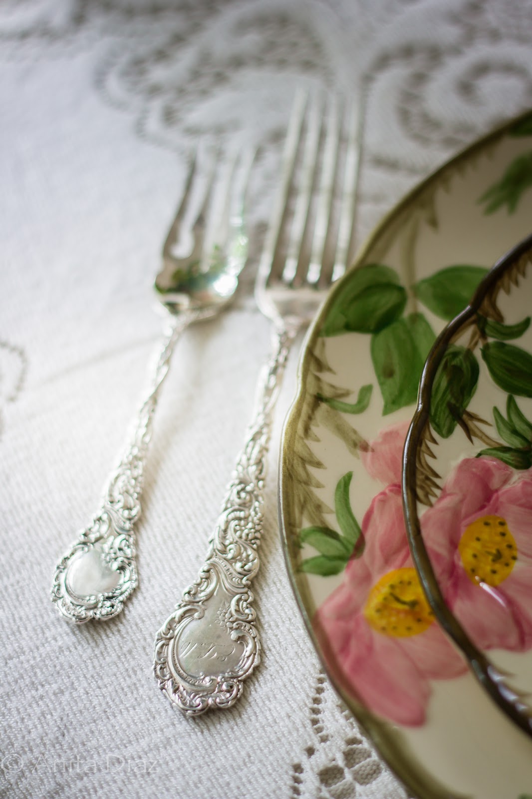 Hi, Anita, I just love your style! Desert Rose was the first set of dishes I bought for my first apartment. I have collected so many more patterns and styles since my youth! Your table settings are just perfect. I love the vintage silver, Alvin Bridal Bouquet, so beautiful. Thank you, for sharing your home and great ideas.