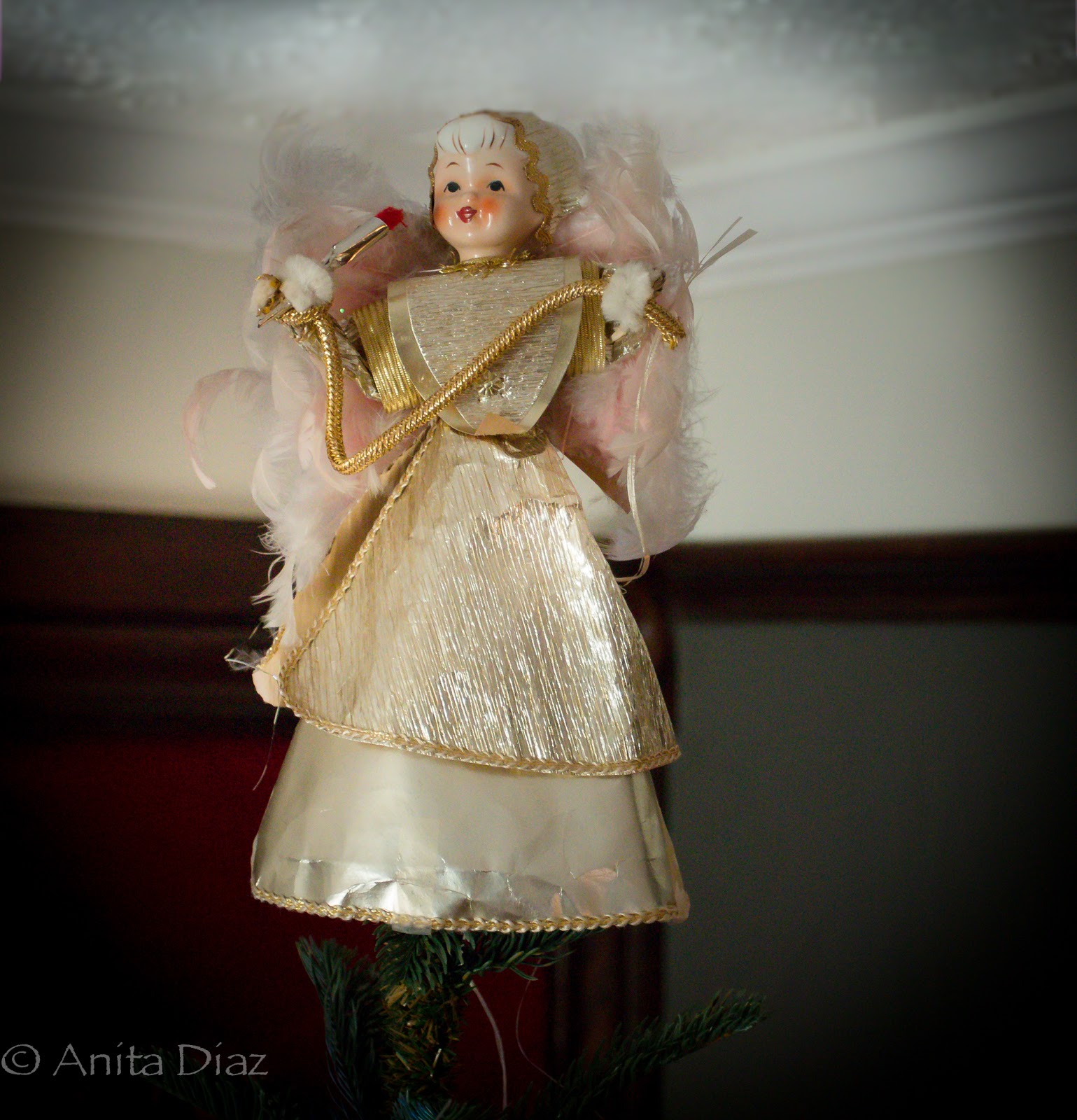 I topped my tree with this beautiful angel, which my mother found in the attic several years back in a box my grandmother had marked, “Mother’s Angel.”