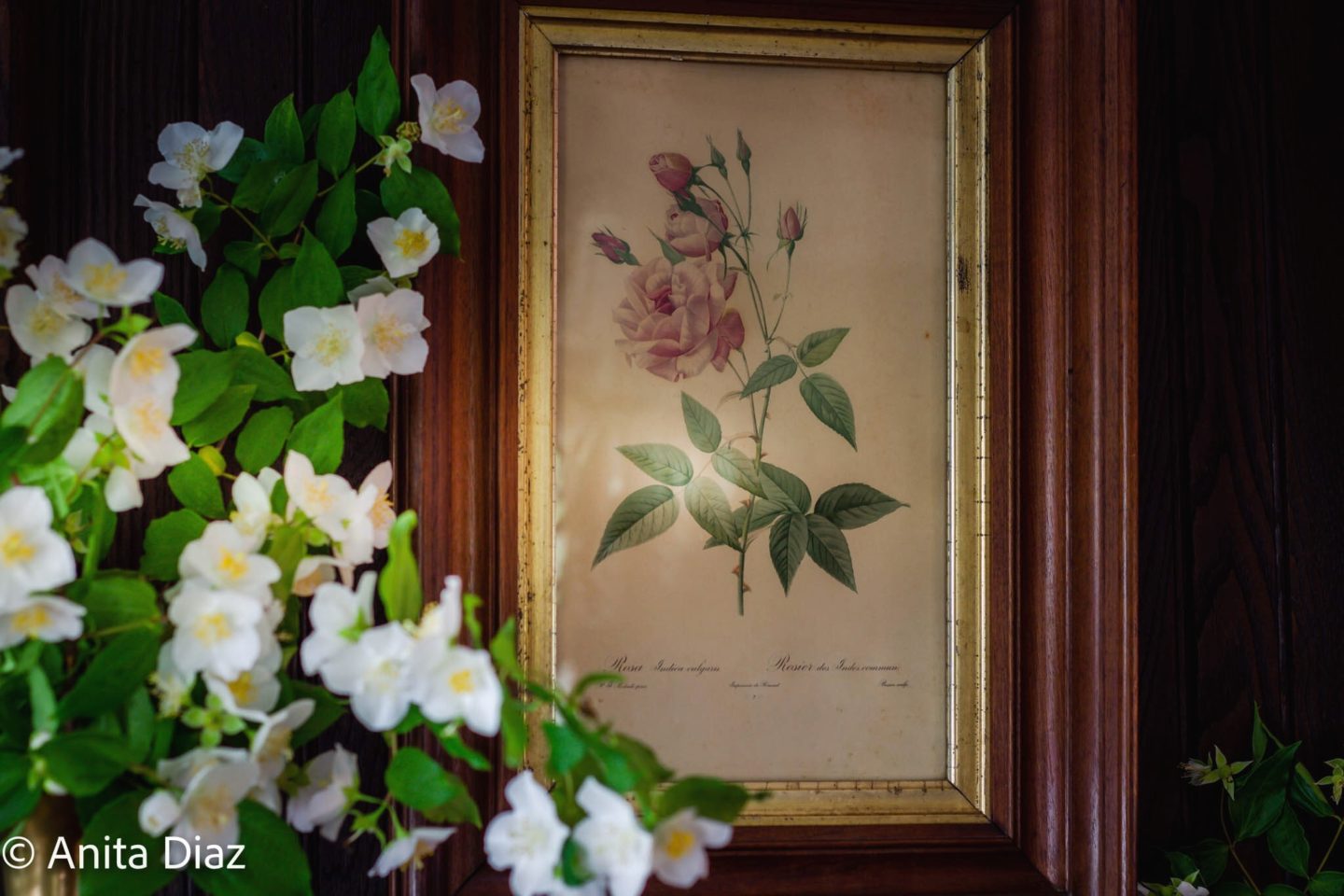 I borrowed the antique inherited rose prints from my mother, and while I really wanted to keep them together, I had another spot perfect for the mate.