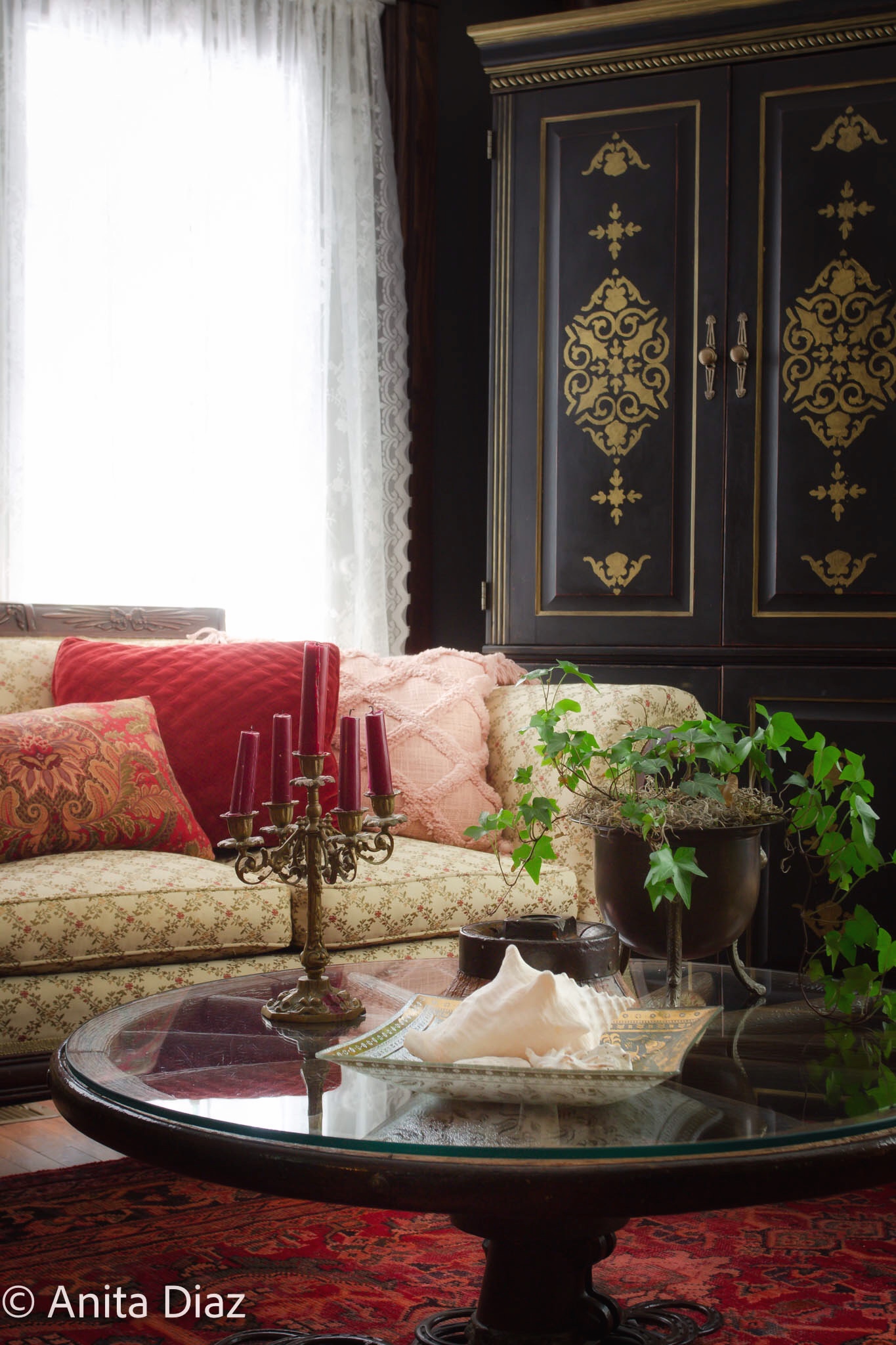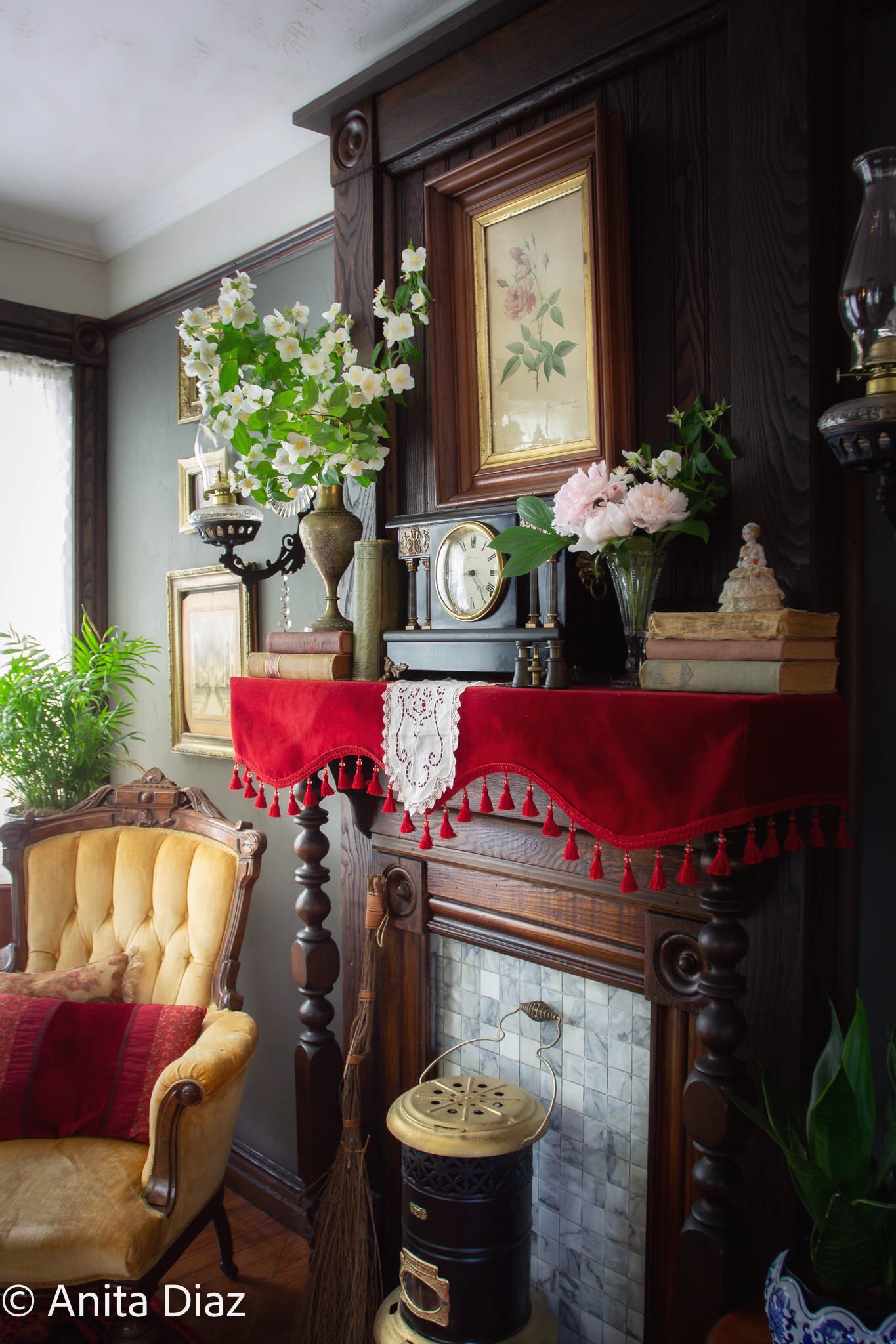 First of all, I love your profile pic, you’re so beautiful! I keep on telling you that it’s always fun touring your home and yes, I mean it! I can stay here all day long reading the stories that are connected to all those treasures around your home…. The pin cushions from your grandmother, the kerosene heater, the brass incense burner… Love it!