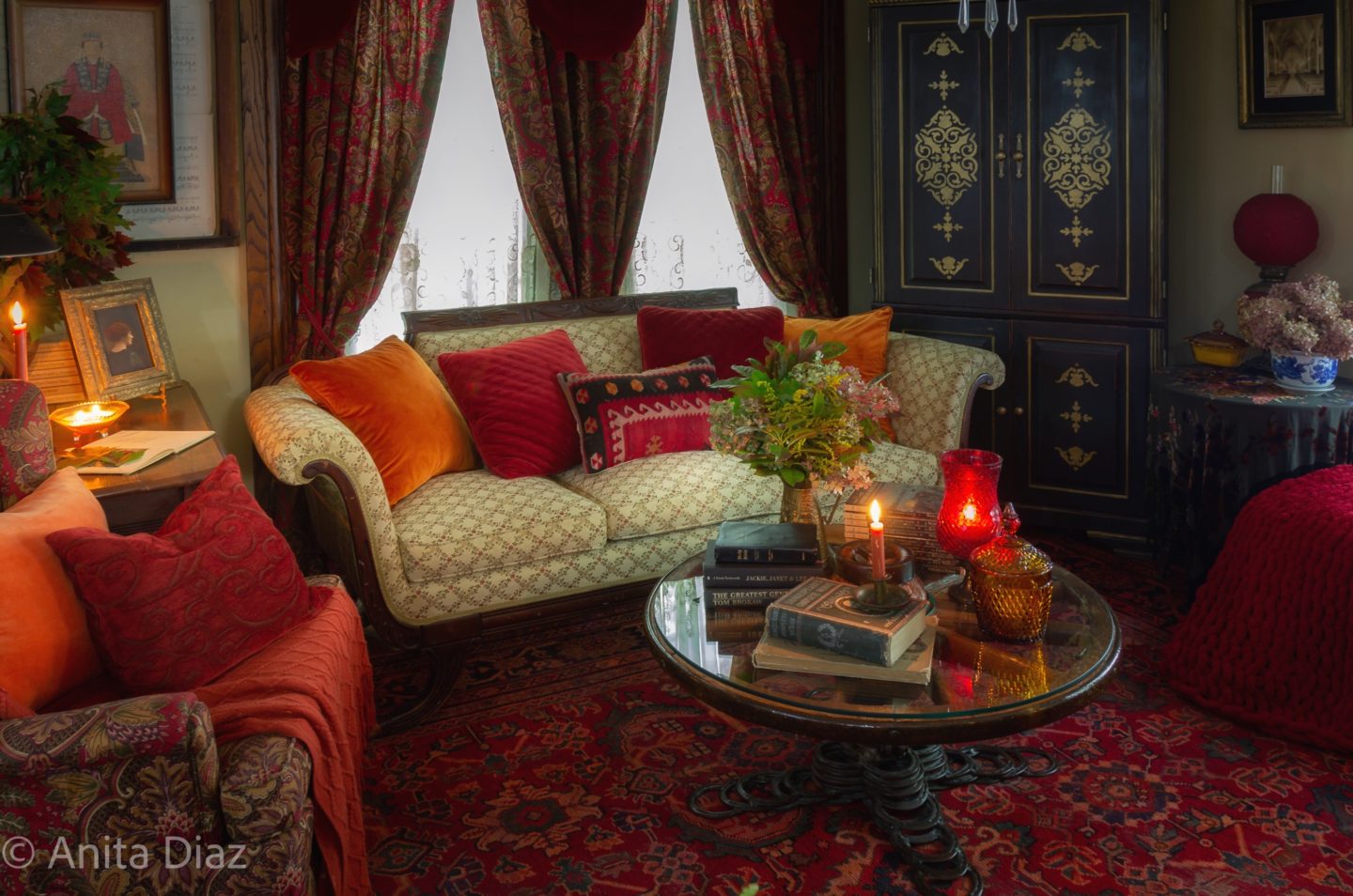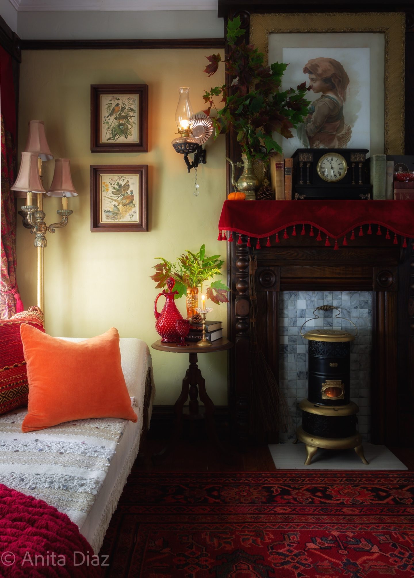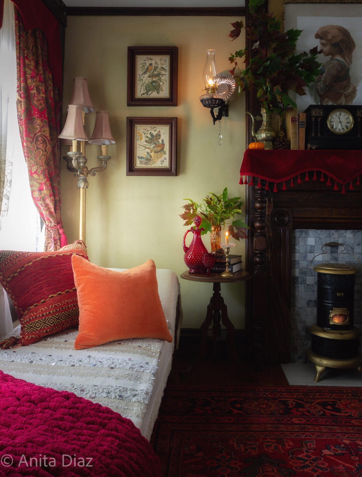 What a stunning vision Anita. Your vintage pieces, bright and bold colors, and candles give this space the most welcoming space for the fall season. That area rug is gorgeous. Thank you so much for sharing your home with us. Happy Fall!