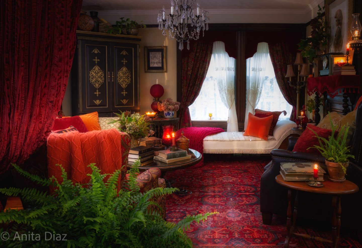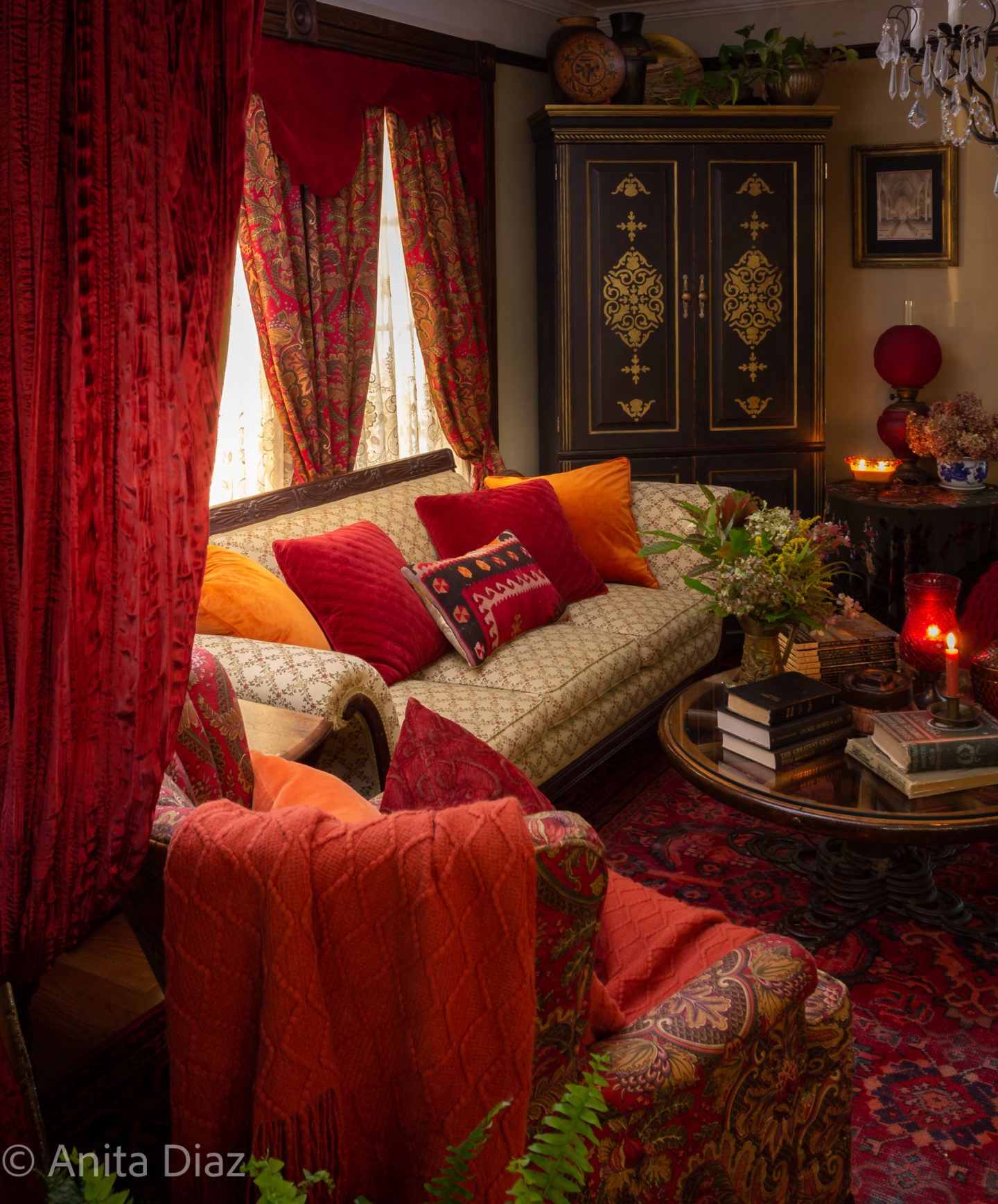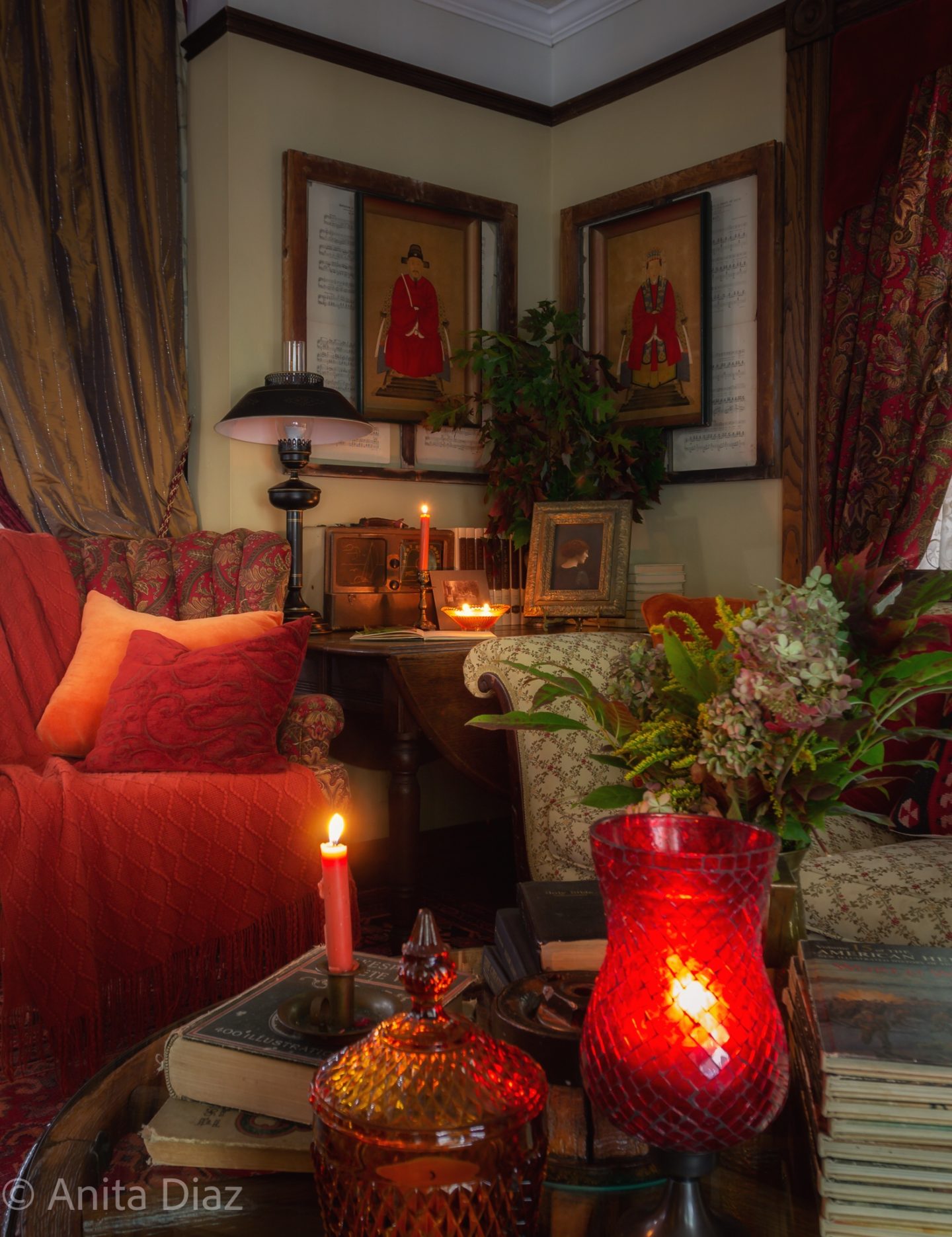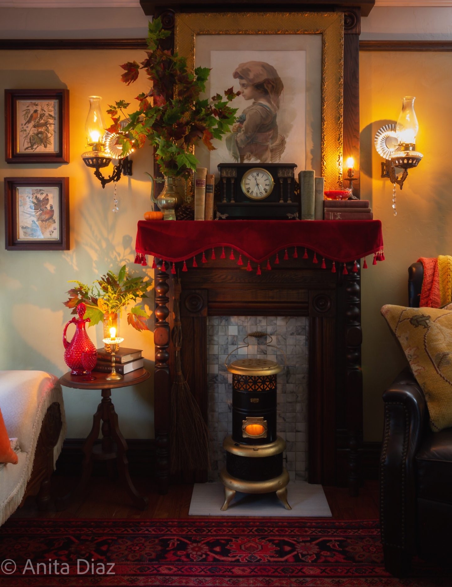 What a stunning vision Anita. Your vintage pieces, bright and bold colors, and candles give this space the most welcoming space for the fall season. That area rug is gorgeous. Thank you so much for sharing your home with us. Happy Fall!