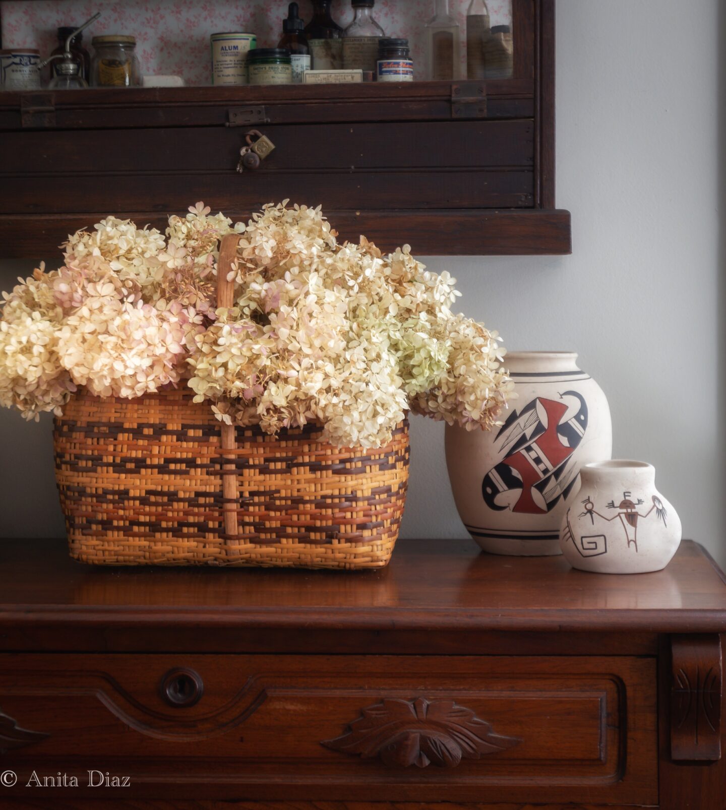 Some of the Cherokee art I treasure are these two river cane baskets. My daughter bought the one on the cedar chest for me, and it’s from Qualla Arts and Crafts in Cherokee, the largest Coop for Native Artists.