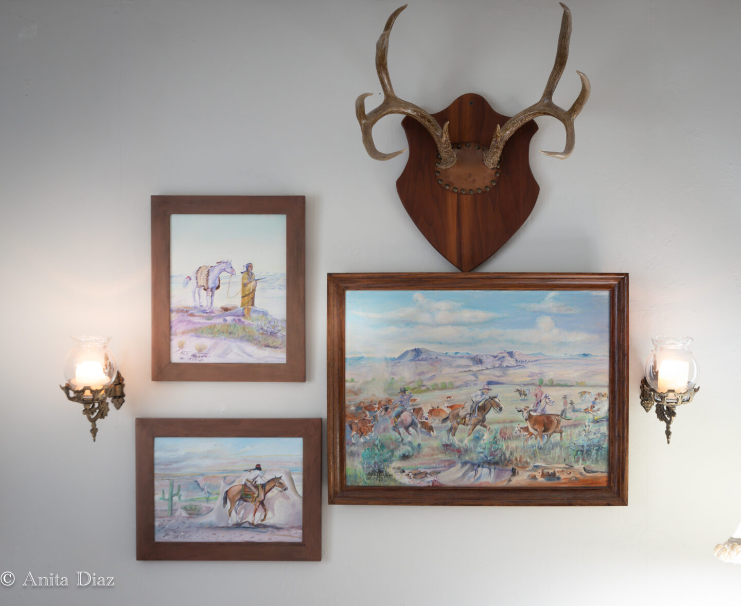 These paintings are by my late uncle in Montana, Rex Thrower, and I’ve treasured them for years. My grandmother gave me the two smaller ones, and Daddy gave me the larger one.