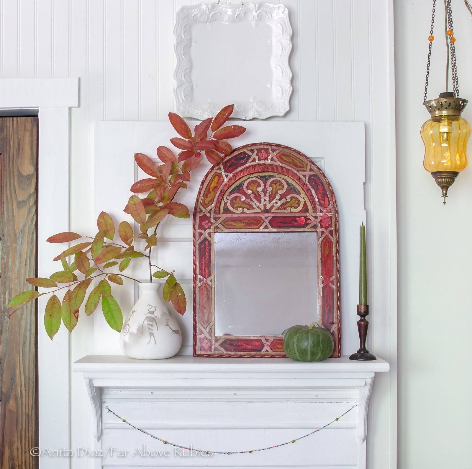 I wired the hanging lantern I bought on a trip to Turkey, and love the gold color for fall. It is especially warm and pretty at night.