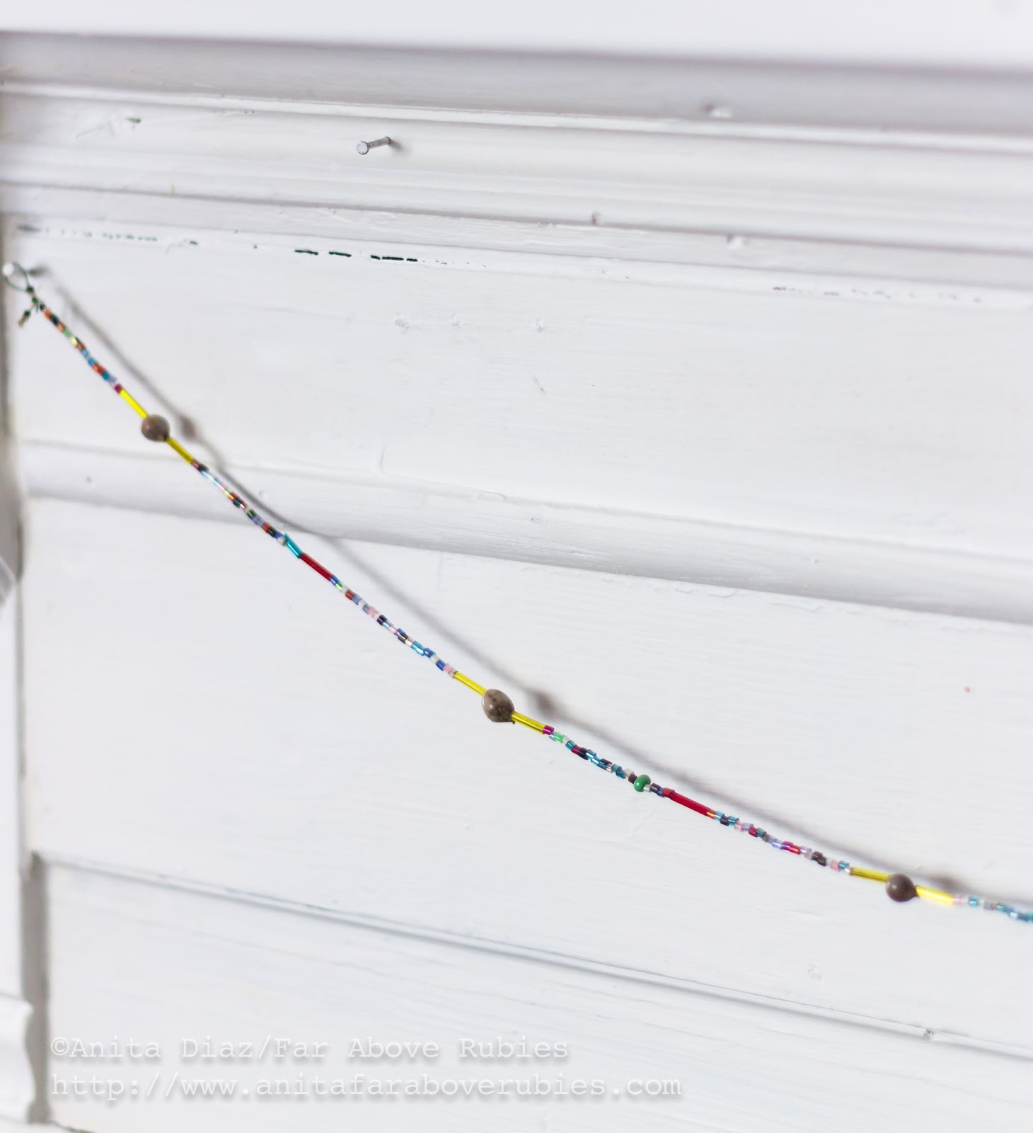 My Cherokee corn bead necklace hangs from the mantel.